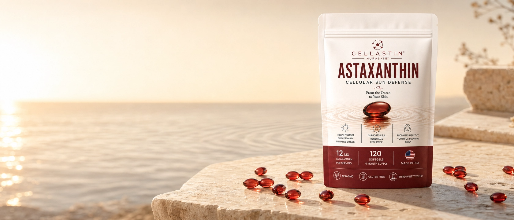 Powered by astaxanthin — one of the most powerful antioxidants known — Cellastin helps support your skin at the cellular level, where damage truly begins.
